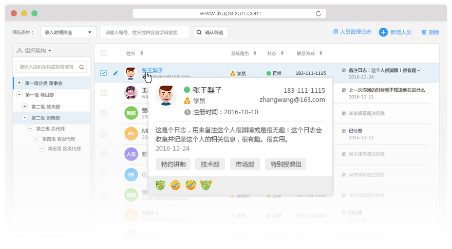 在极速2.0在线培训系统中,我们简化了很多不捕鱼的系统步骤流程,你甚至可以只操作一步便在新建培训任务。我们根据实际使用完善了管理功能,清晰的向您展示学员的学习/培训/考试情况,甚至是学员的学习喜好。完善的课程统计让你清楚每一堂课的受欢迎情况。除此之外还有知识库、通讯、统计等更多实用功能。我们的系统在成长,同时希望收集更多用户需求,打造更懂你的培训系统